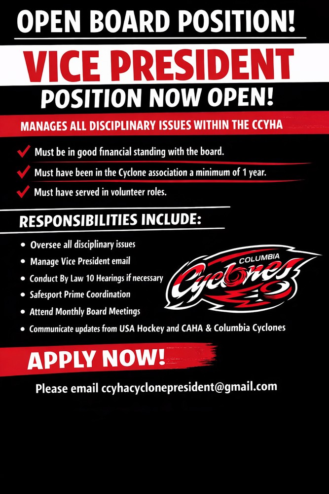 Vice President Position Now Open! Please send letter of interest and qualification to