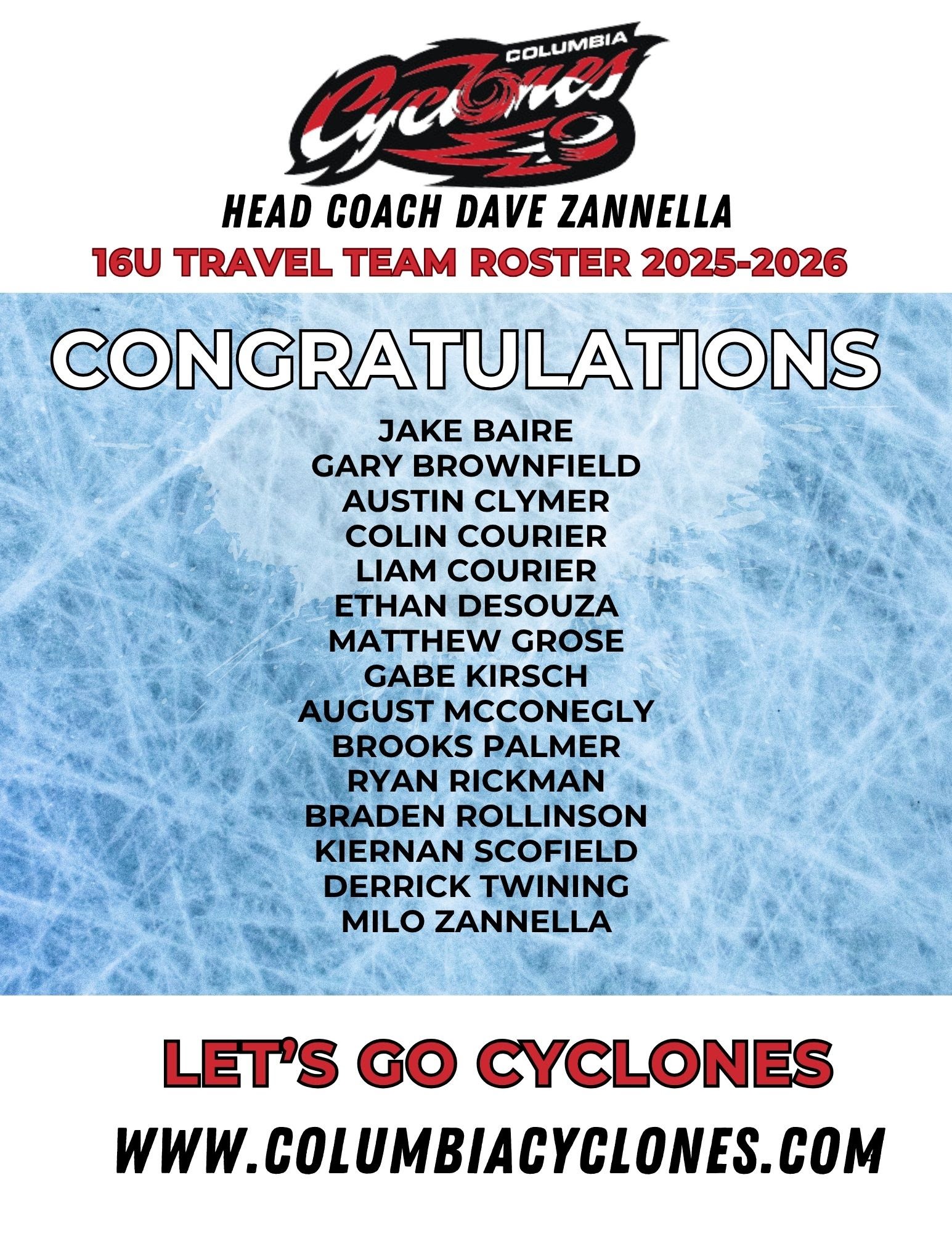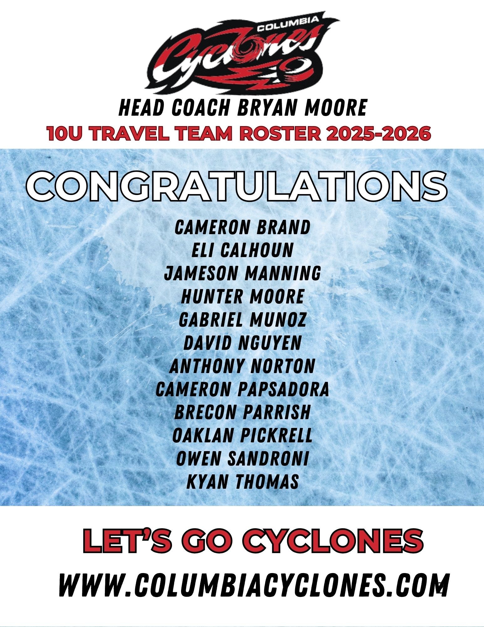 Welcome to the Columbia Cyclones 2025–26 season! We're excited to kick off another competitive year of youth hockey. *NOTICE* Please make sure your email address is correct as this is where offer letters will be sent.