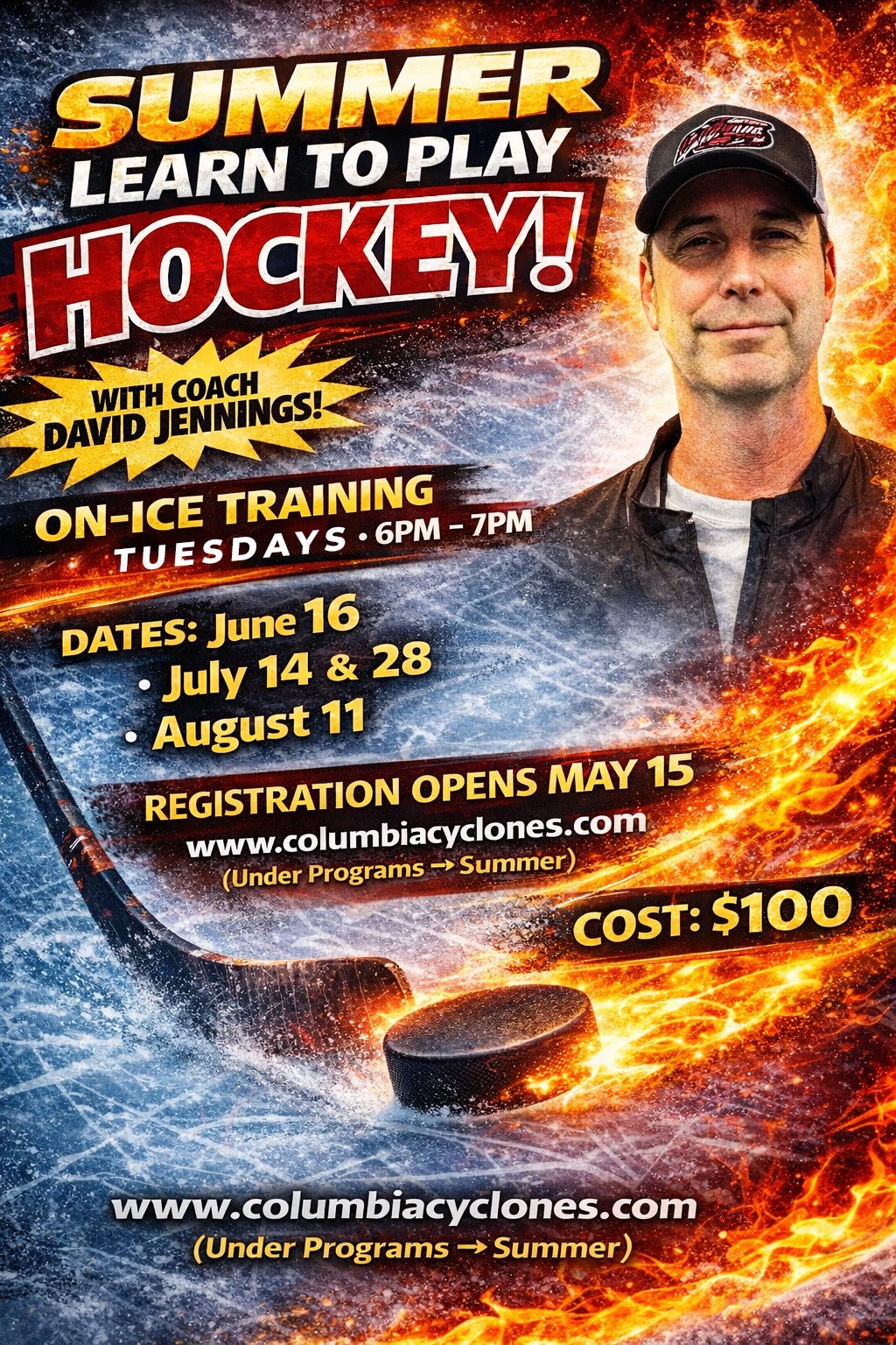 Summer Learn to Play Hockey with Coach David Jennings. Cost: $100